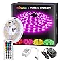 MINGER RGB LED Light Strip 5M (16.4 Ft) Waterproof 150 LEDs SMD 5050 Flexible Rope Lighting Kit with 44 IR Controller and Power Adapter